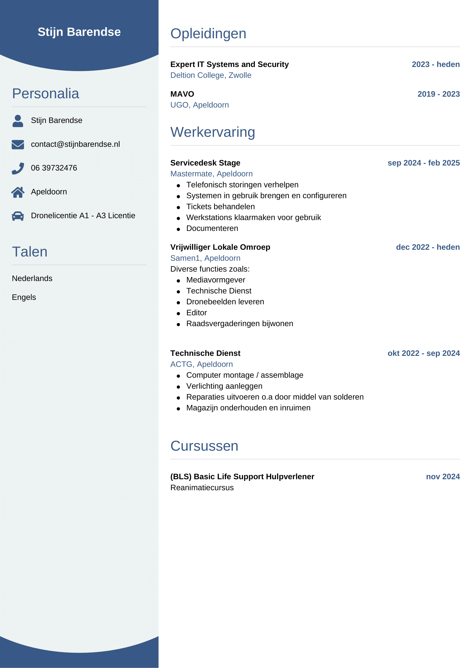 Mijn naam is Stijn Barendse. Ik ben 18 jaar oud en werk momenteel in de weekenden en